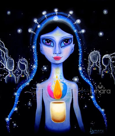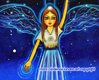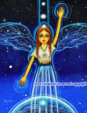 Así que se muestra el cuidado, el amor, la energía sutil y fuerte a la vez, de este ser angelical y otras energías sutiles alrededor que se ven como luces palpitantes y todas esas luces se multiplican porque también quiere decir que esas frecuencias angélicas están en todos esos planos apoyándote. Siendo apoyo aquí en esta dimensión terrena y apoyándote en todos los otros planos donde te encuentres, donde se encuentren tus yoes. Todas estas chispas angélicas también son multidimensionales como tú.