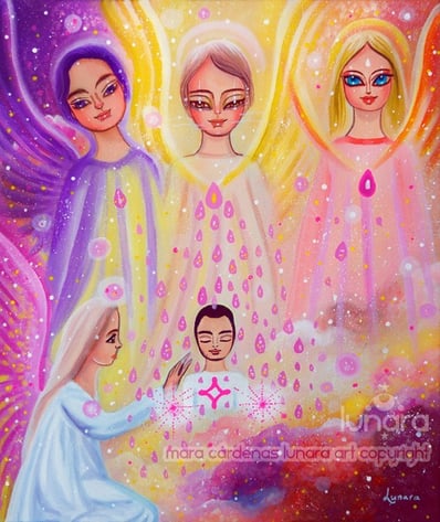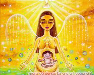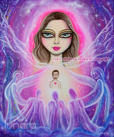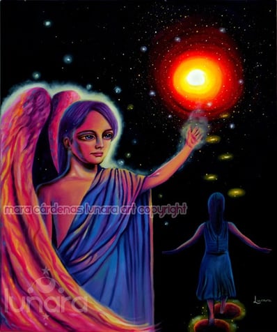 Viene acompañado de un mensaje que en ese momento los Ángeles Guardianes quieren transmitir a la persona, este mensaje se ve impreso en la pintura también. La pintura tiene la energía de estos Seres de Luz, por tanto es una imagen de vibración viva que contiene energía de Luz sanadora y de Amor. Con ésta puedes meditar y conectar con tus bellos Seres alados o guías espirituales.